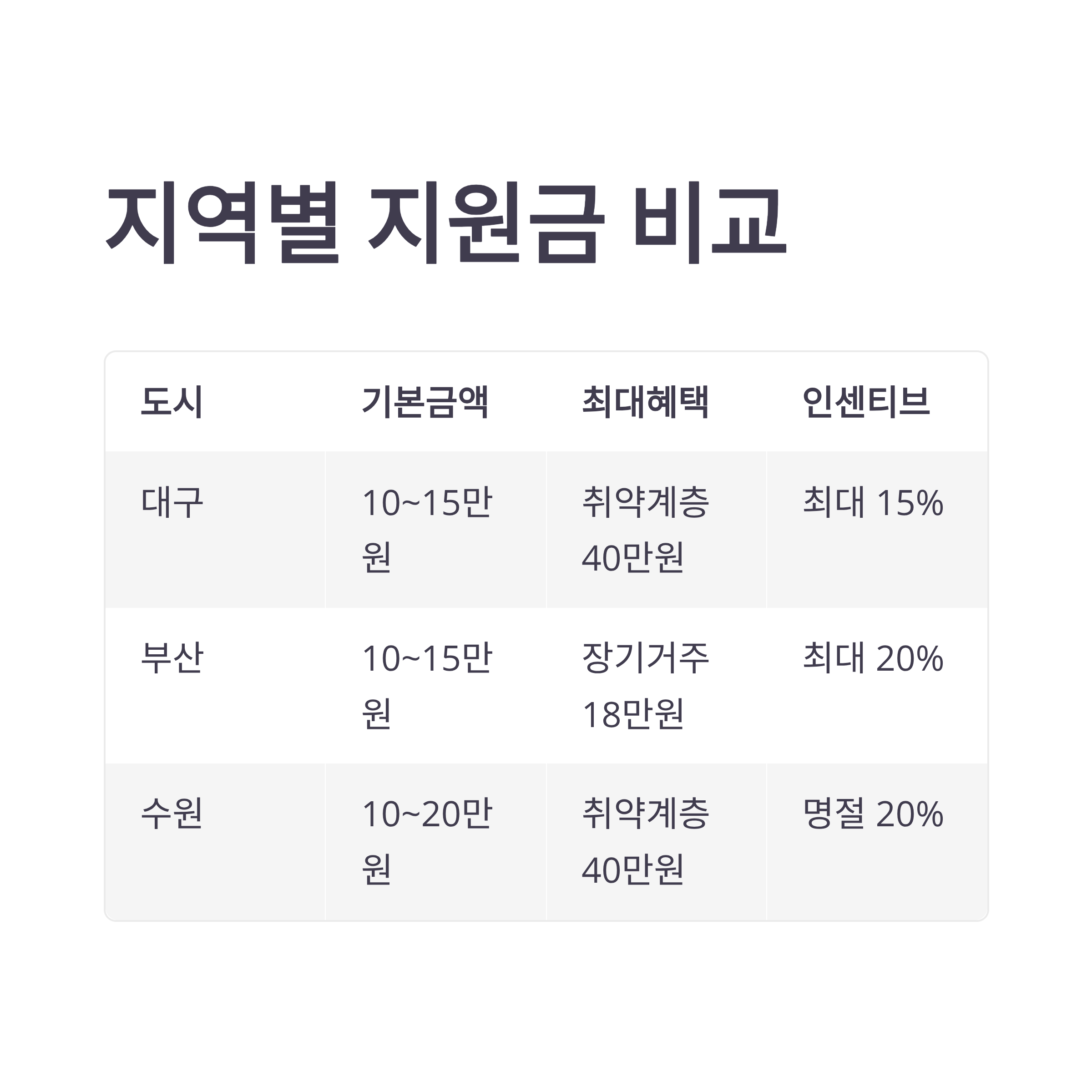 지역별 지원금 비교표