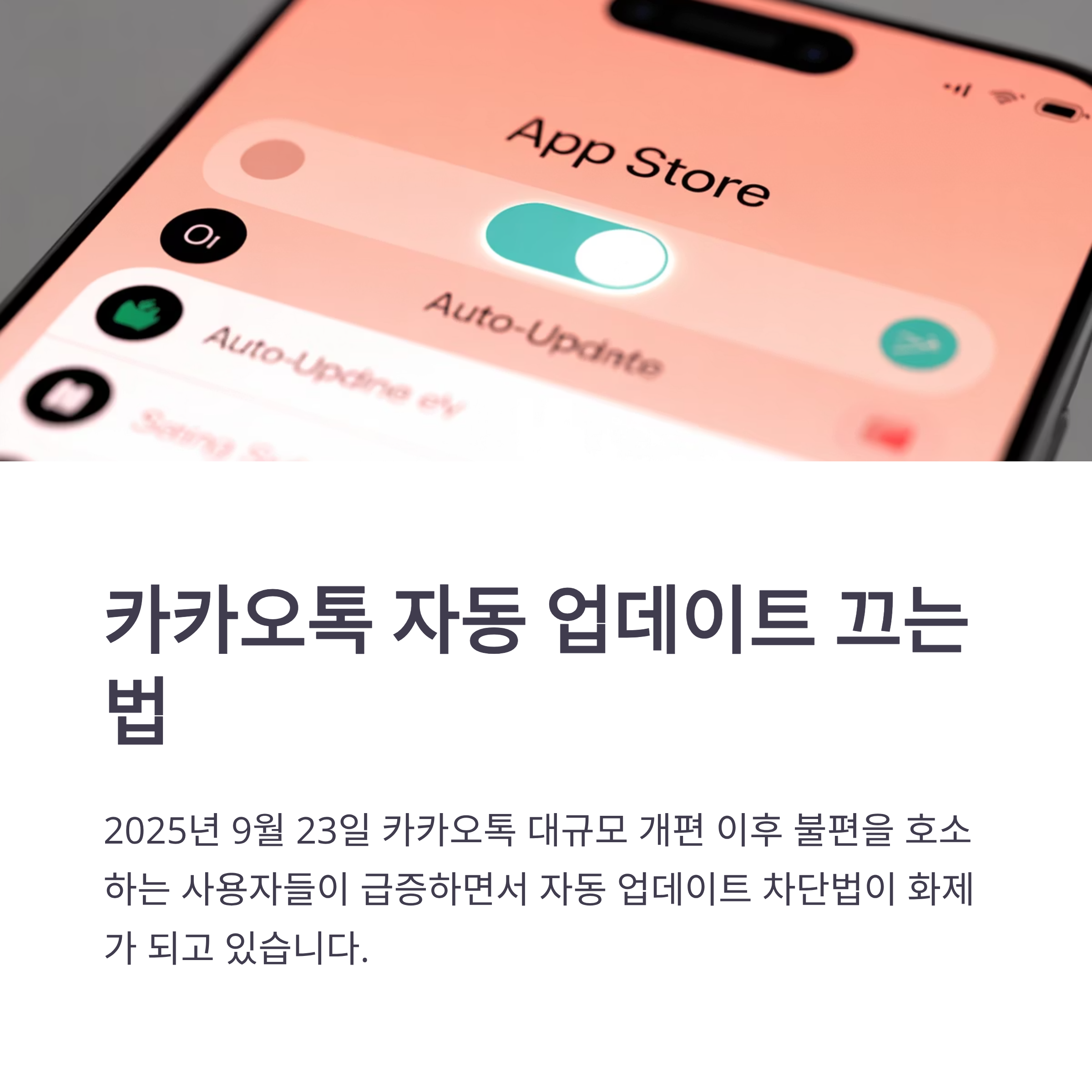 2025년 9월 23~24일 사이, IT 커뮤니티에는 '카카오톡 업데이트 끄기' 관련 게시글이 1,000건 이상 올라왔습니다. 카카오 주가는 -4.67% 하락했고, 주요 커뮤니티에는 "자동 업데이트 막는 법", "롤백 가능한가?" 등 질문이 폭증했습니다.