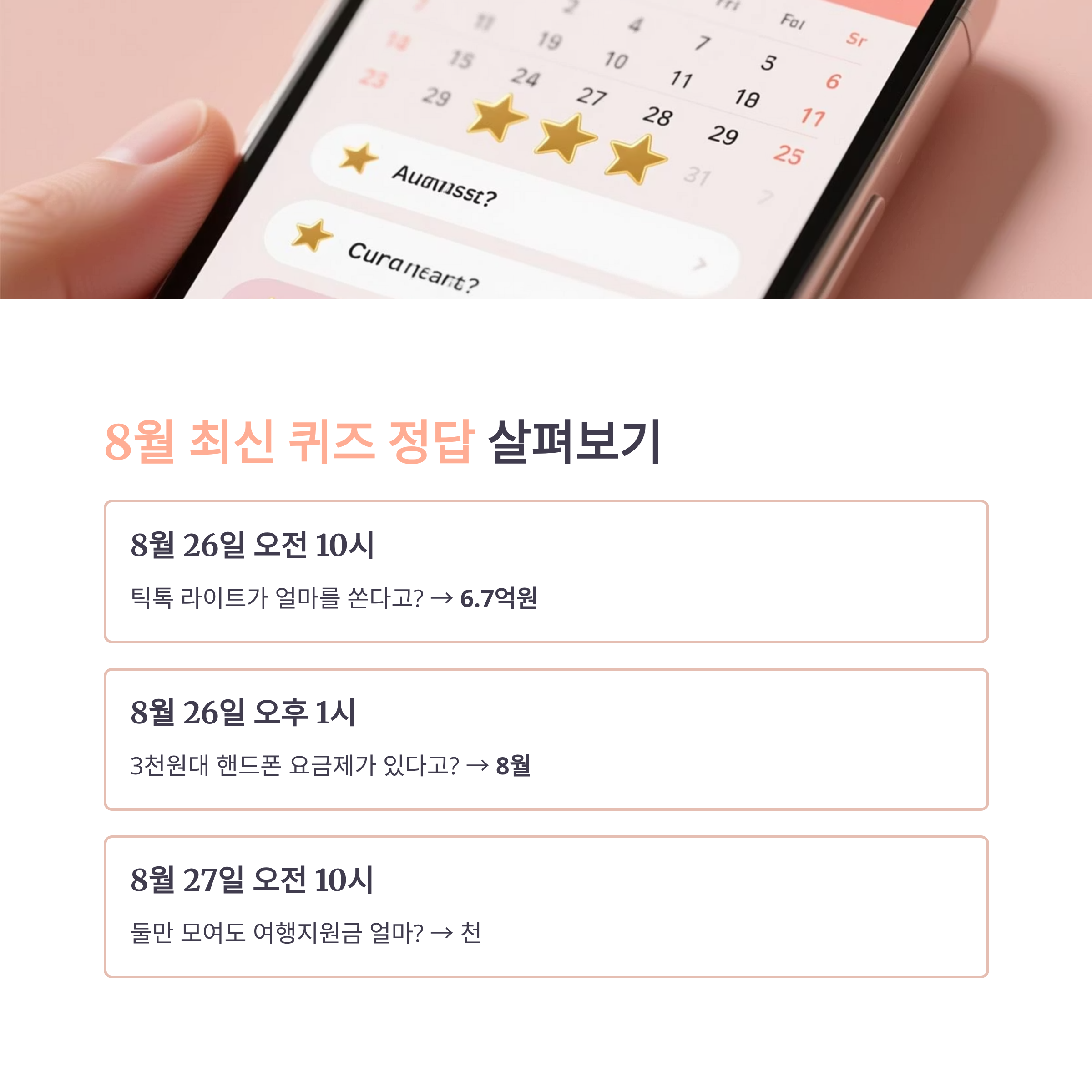 2025년 8월의 주요 정답과 참여 팁을 참고해 매일 아침 퀴즈타임을 놓치지 마세요!