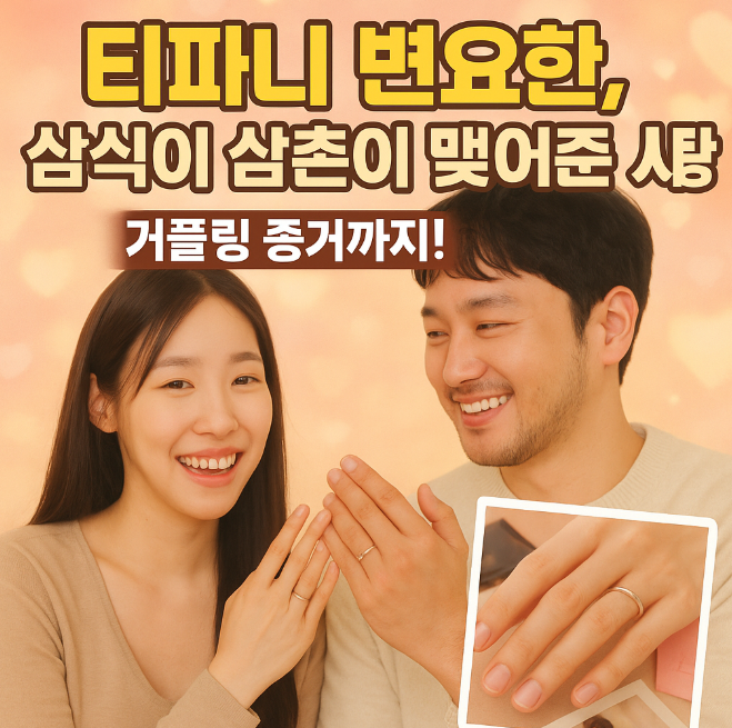 공식 발표 이전부터 팬들 사이에서는 이미 열애에 대한 의심이 조용히 퍼지고 있었는데요, 그 중심에는 바로 '커플링'이 있었습니다. 티파니는 평소 반지를 자주 착용하지 않는 스타일이었는데, 올해 초부터 같은 반지를 오른손 약지에 착용한 모습이 여러 차례 포착되었죠. 영화 시사회, 콘서트, 포토월 행사 등에서 동일한 반지를 확인할 수 있었고, 변요한 역시 유사한 디자인의 반지를 착용하며 팬들의 눈길을 끌었습니다.
