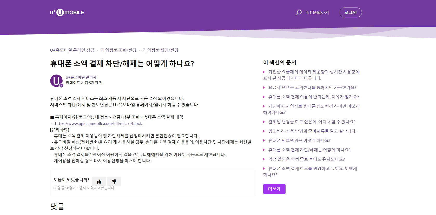 - LG U+: U+고객센터 → 모바일서비스 → 소액결제 차단 메뉴 → 해제