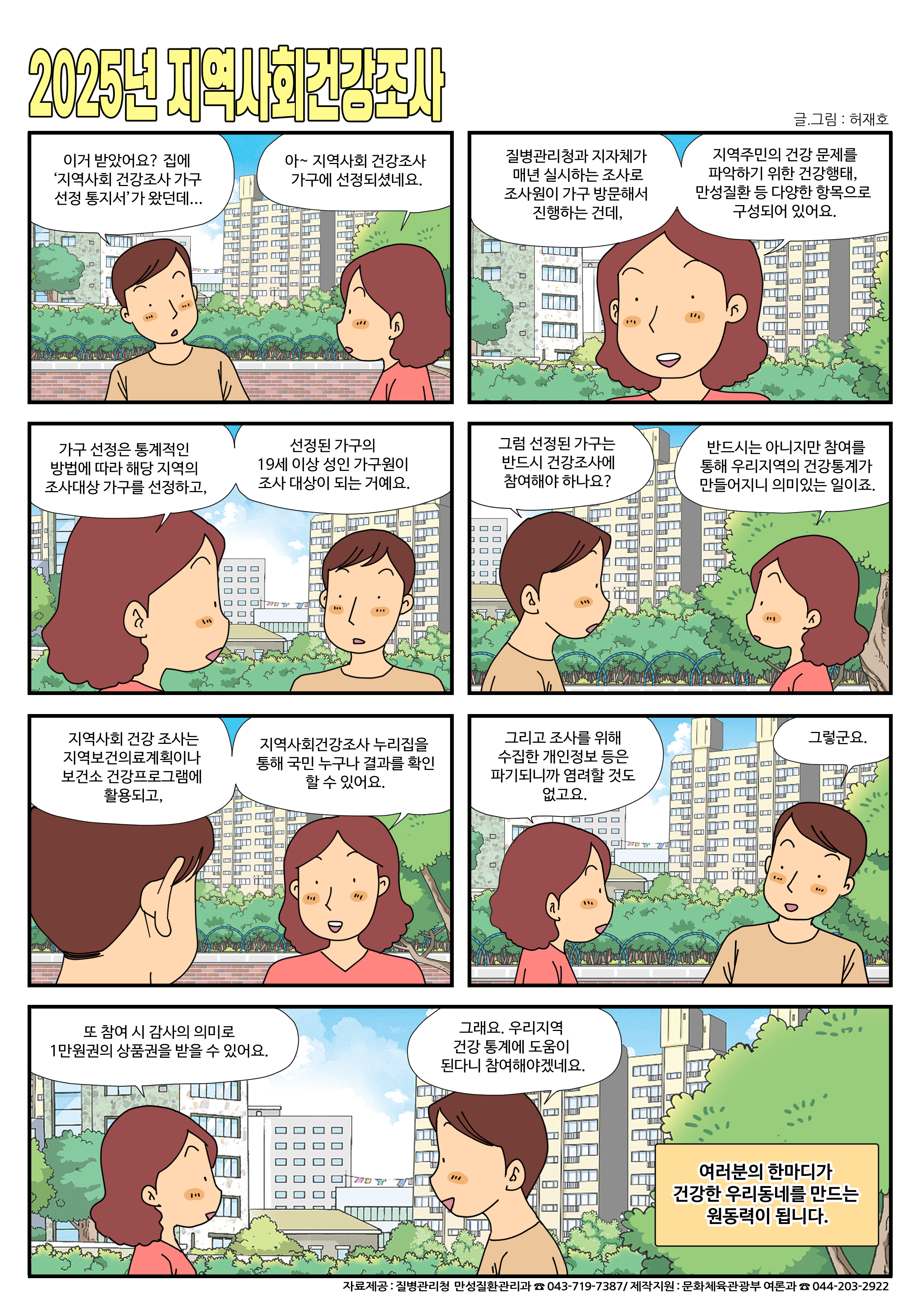 2025년 지역사회건강조사, 여러분의 소중한 한마디가 우리 마을을 더 건강하게 만듭니다. 이번 조사에 꼭 함께해주세요!