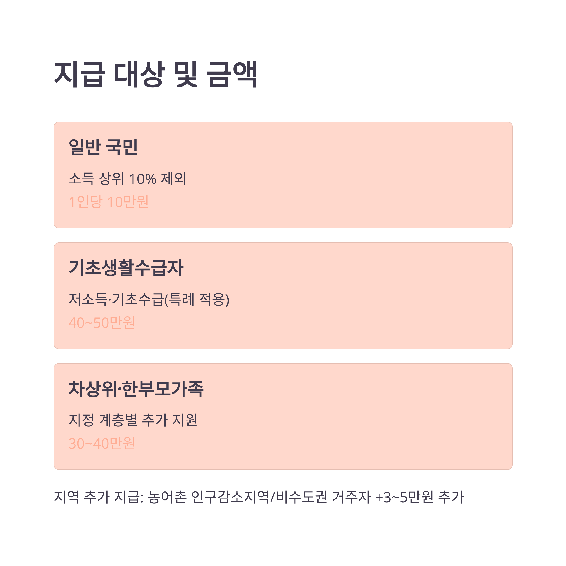 - 소득 상위 10%: 지급 제외 (건강보험료·재산세 자료 기반)