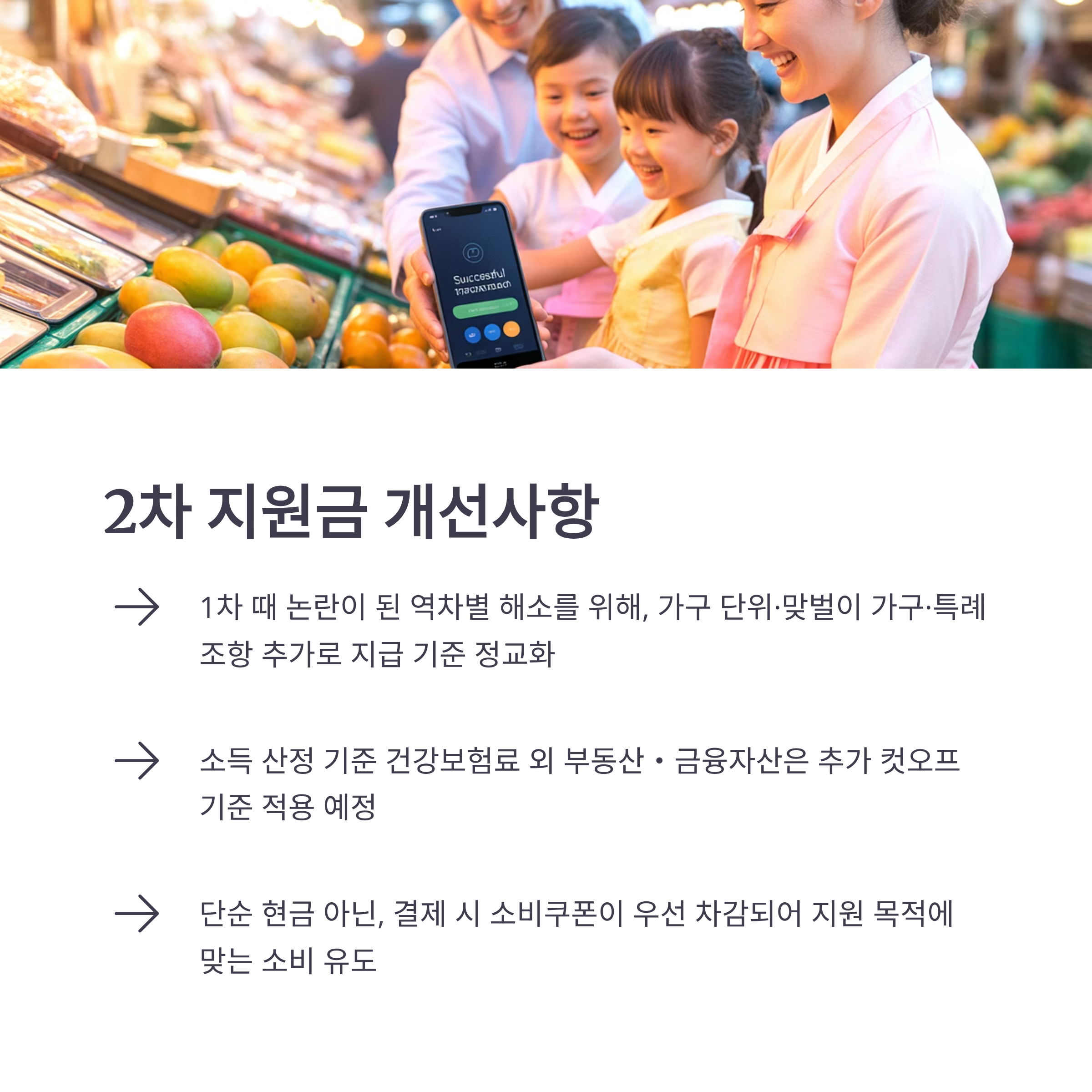 - 가구 합산, 맞벌이, 특수 사례 고려 → 1차 때 제기된 역차별 보완