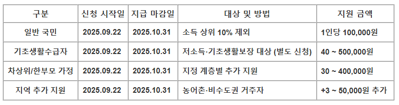 - 지급 개시일: 2025년 9월 22일(월)부터 본격 지급