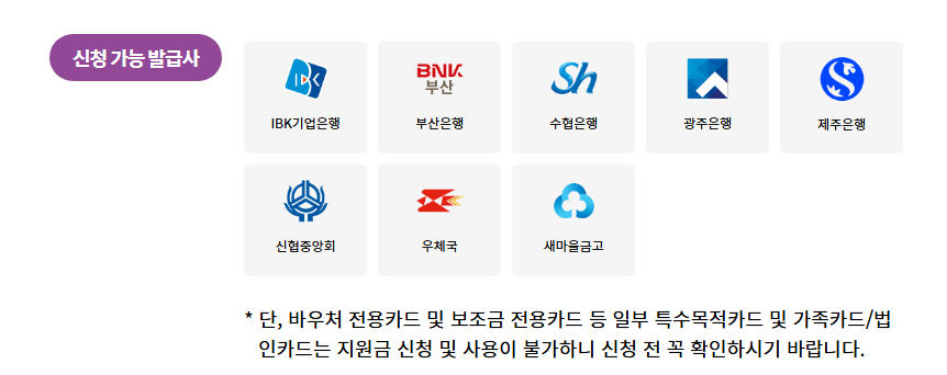 - 지급 후 바우처 잔액은 카드사 홈페이지 또는 앱에서 확인 가능