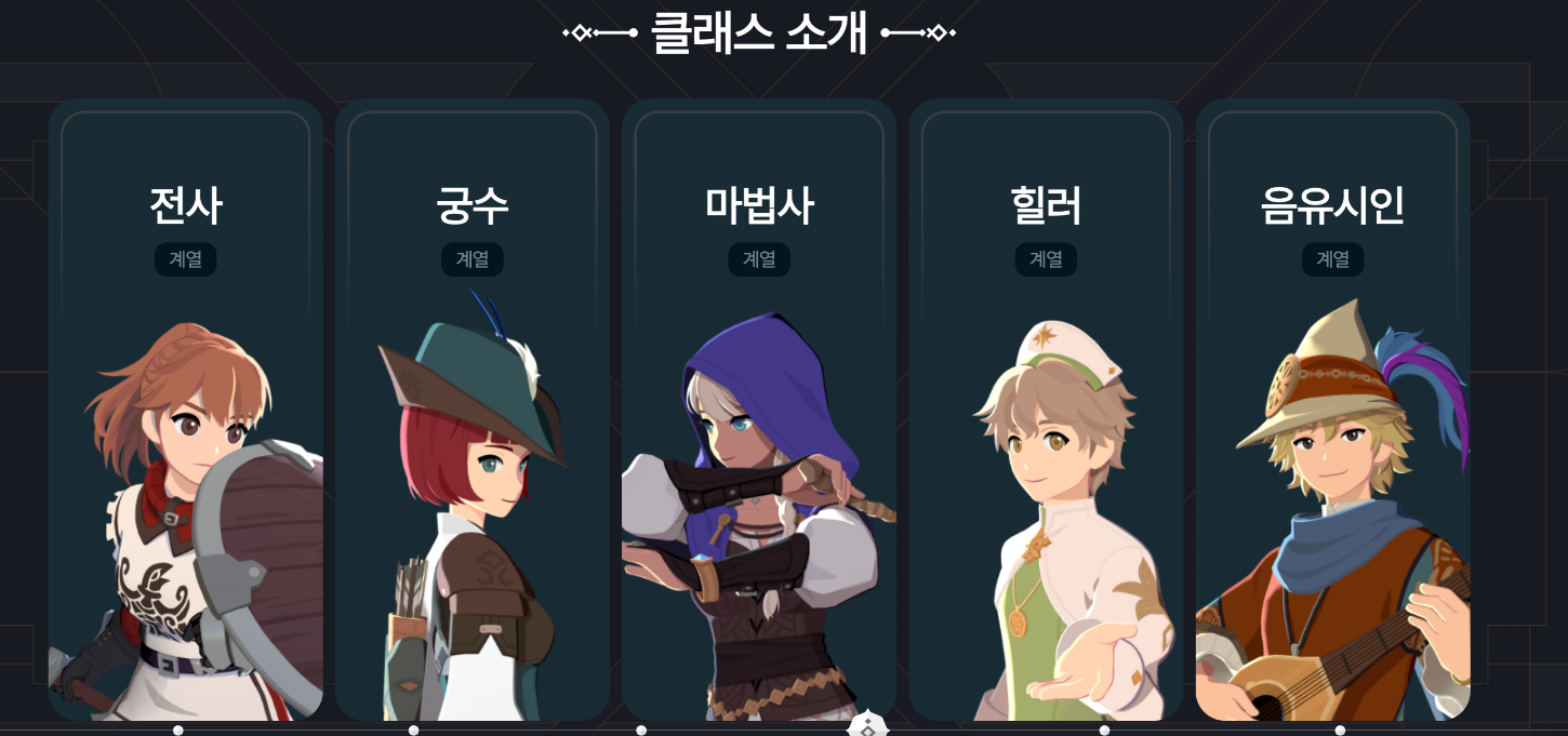 | 성직자 | 힐 특화지만, 공격력과 솔플 능력 부족 |
