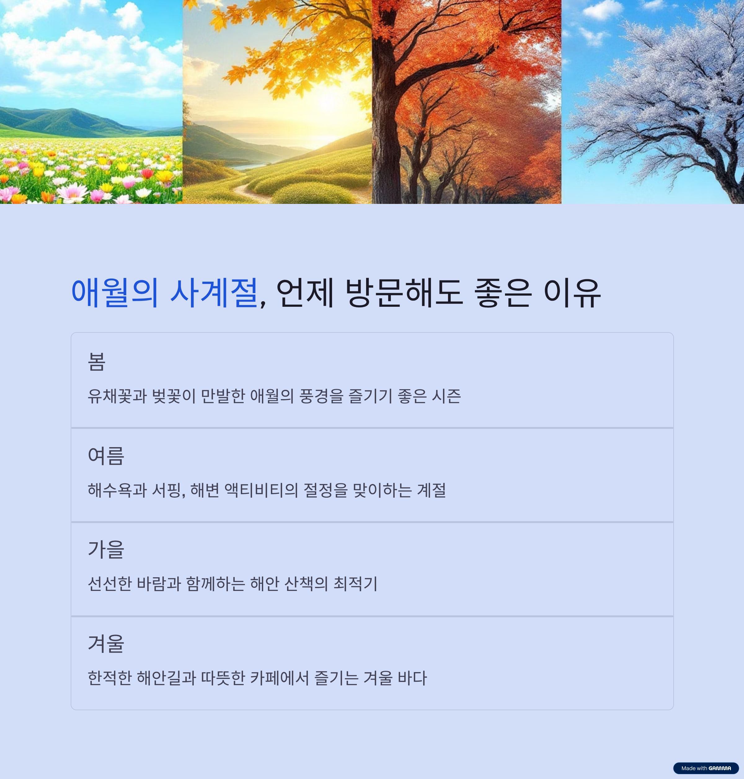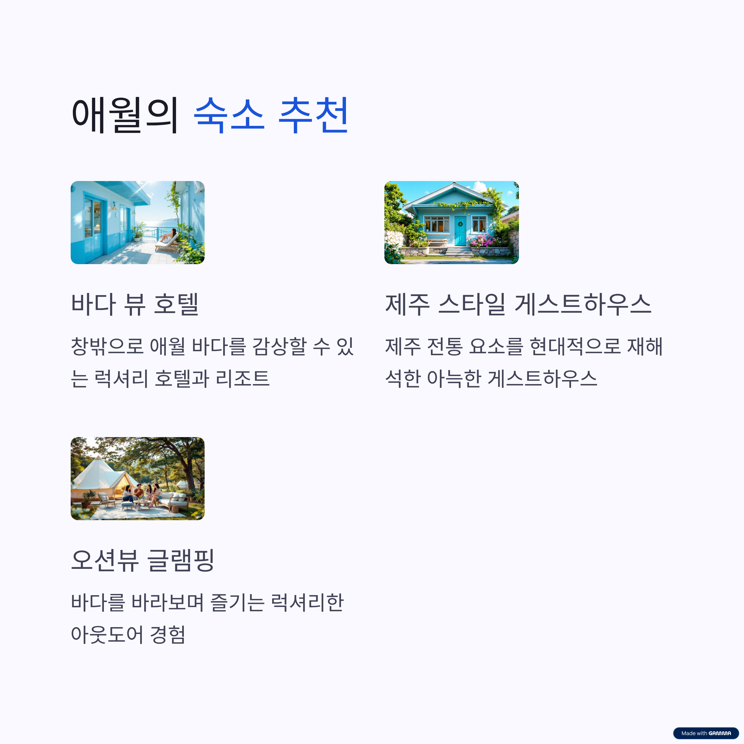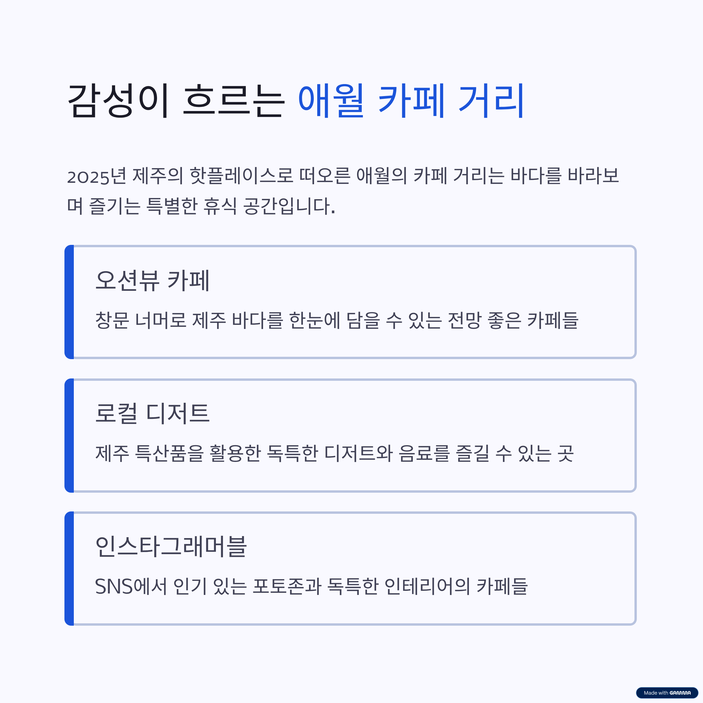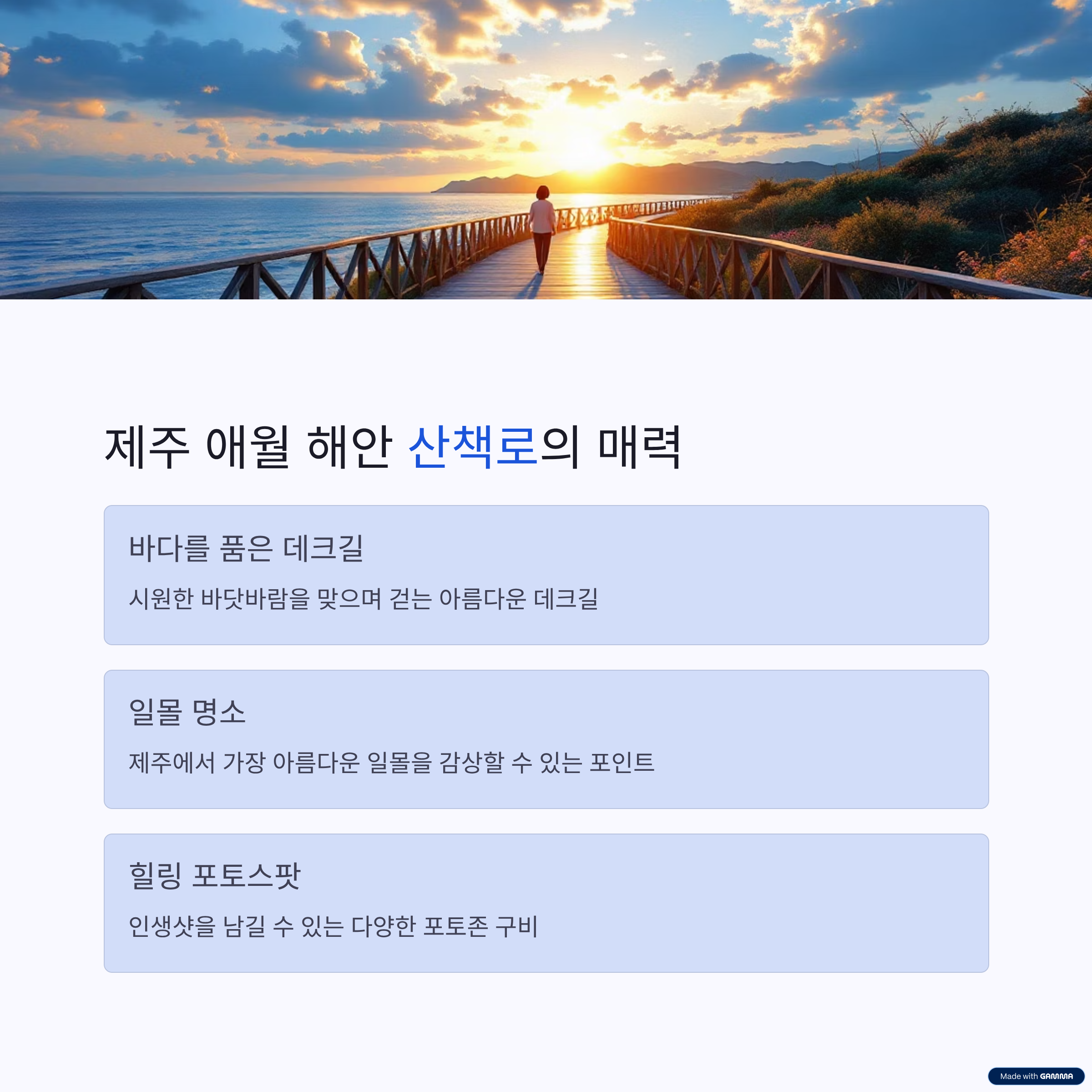 | 애월 산책로 | 애월 감성카페 | 곽지해수욕장 |