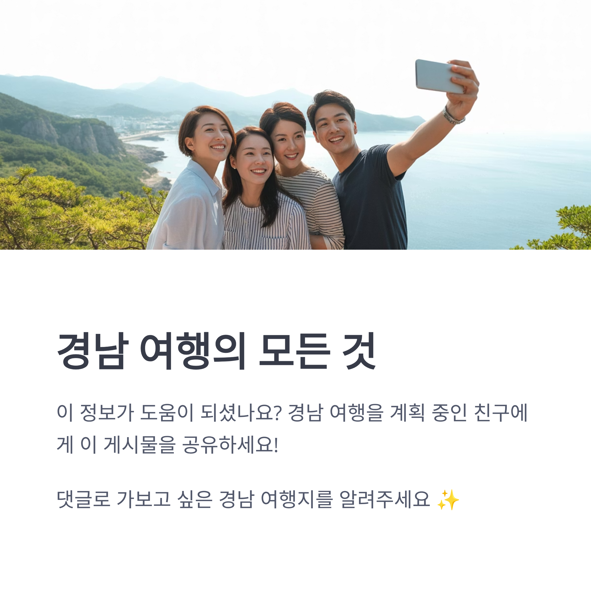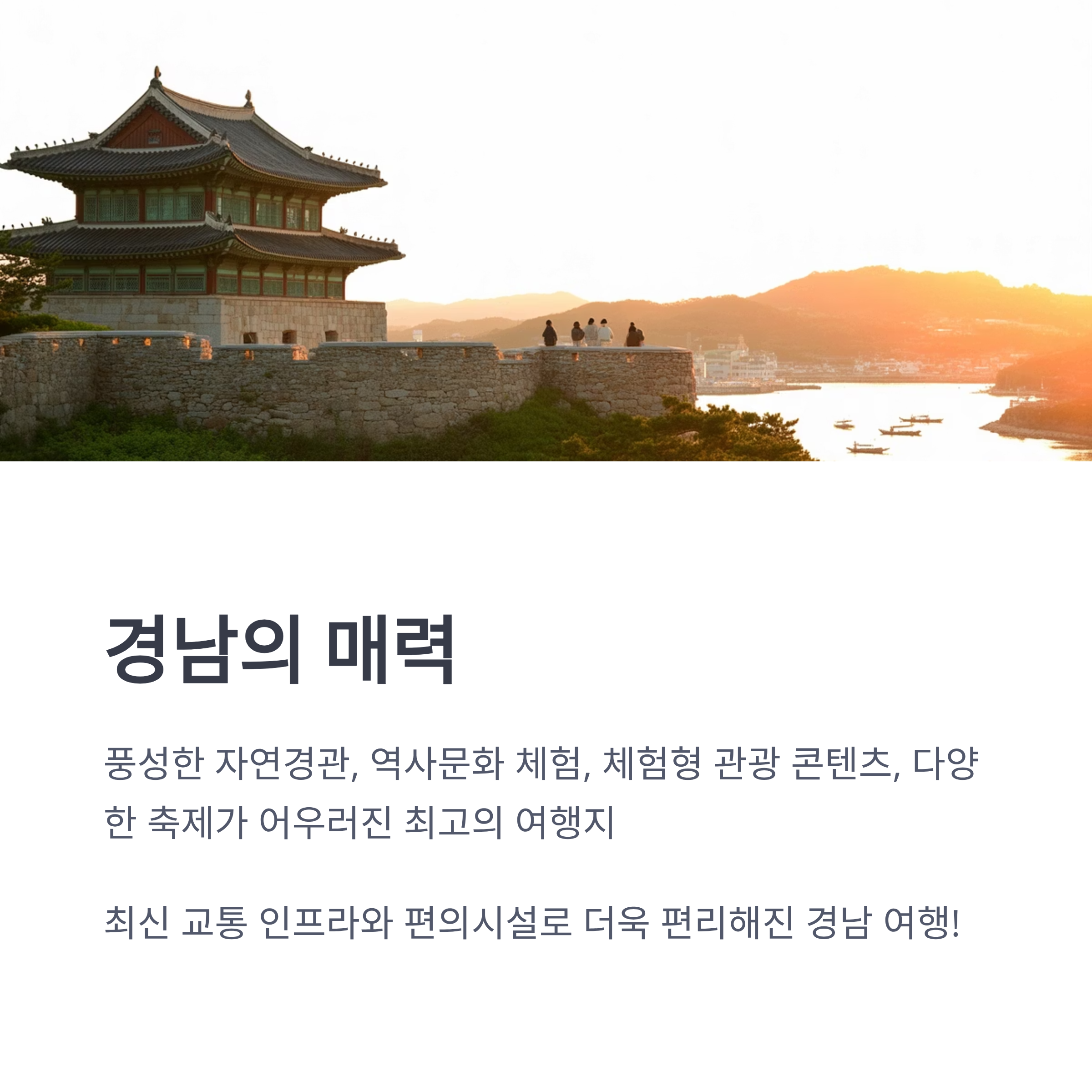 최신 교통 인프라와 편의시설 덕분에 여행이 더욱 편리해진 지금, 이번 휴가에는 경남으로 특별한 힐링 여행을 떠나보시길 추천합니다.