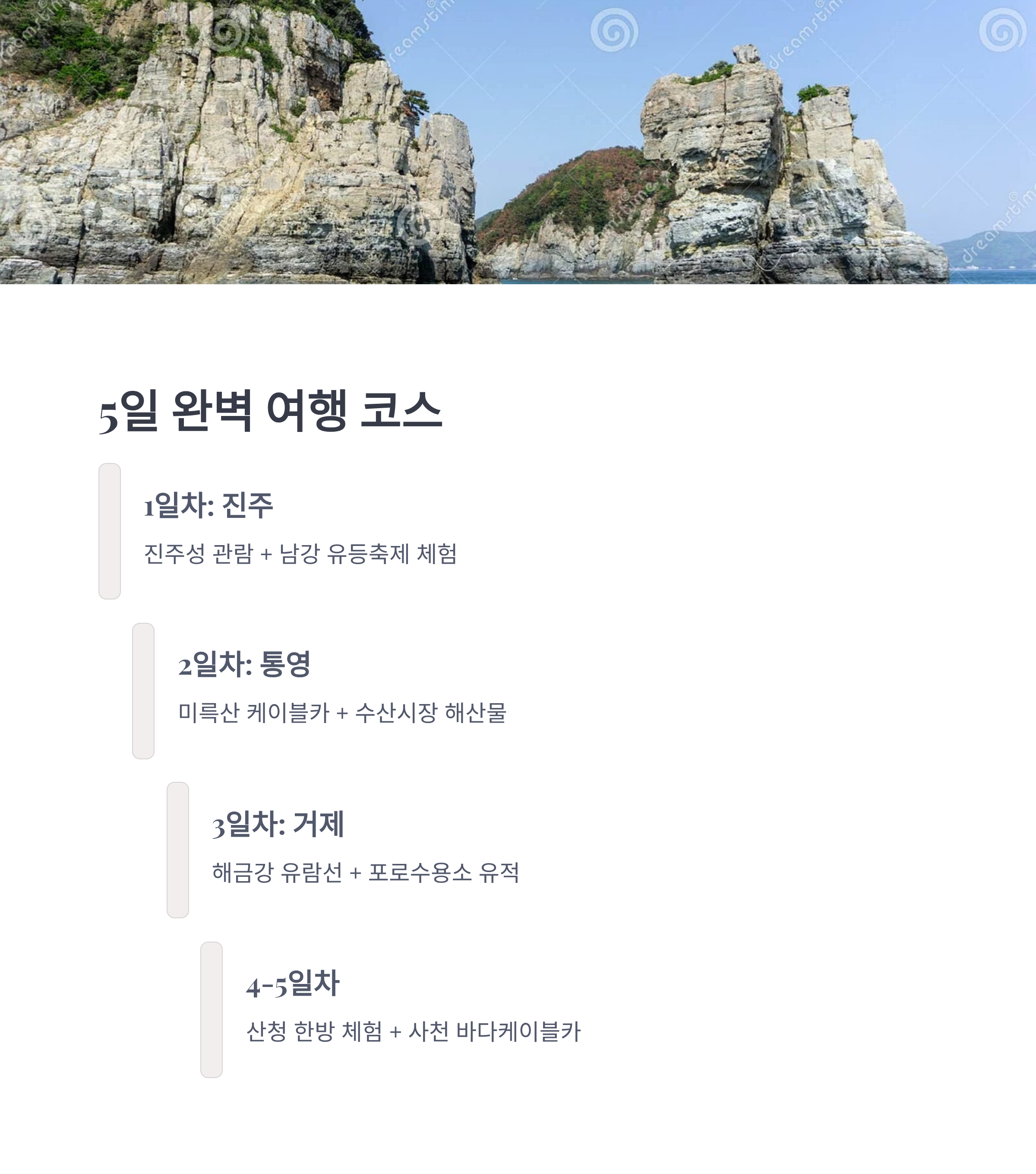 5일 코스로 구성된 경남 여행 일정 예시입니다.