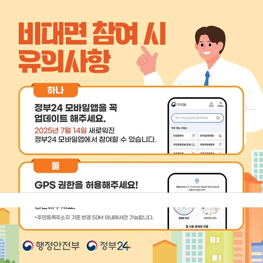 정부24 앱 실행 → 위치정보 켜기 → 주소지에서 참여 완료!
