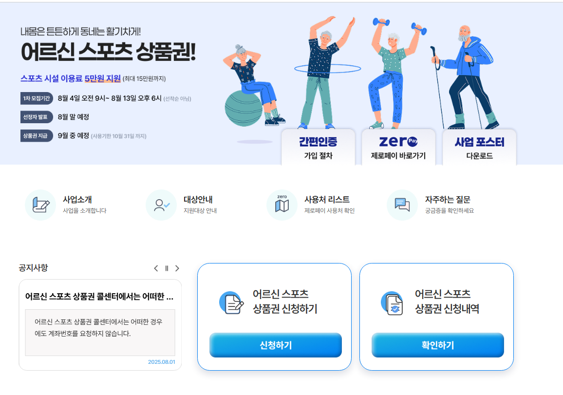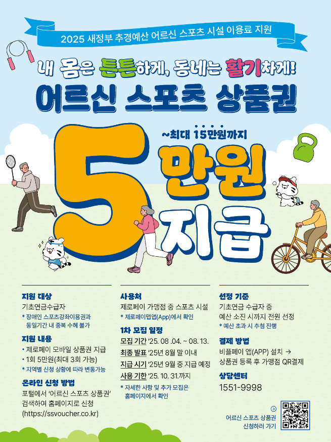 2025년 정부 추경 예산으로 시행되는 어르신 스포츠 상품권 지원사업은 기초연금 수급 어르신이 스포츠 시설을 더욱 쉽게 이용할 수 있도록 돕는 프로그램입니다.