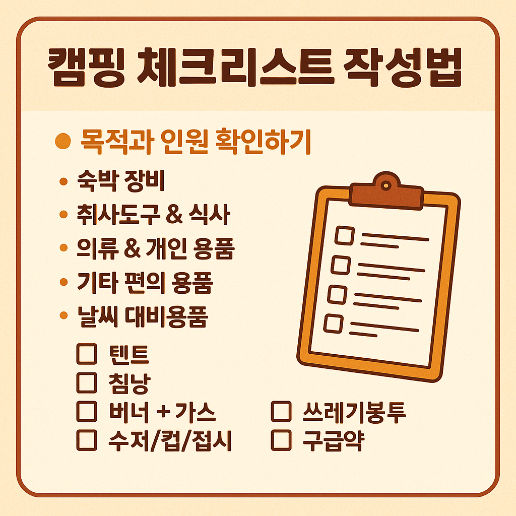 오늘은 여름 캠핑에 꼭 필요한 준비물부터 안전수칙, 보관 요령까지 한눈에 정리된 체크리스트를 PDF로 드립니다! 🎒