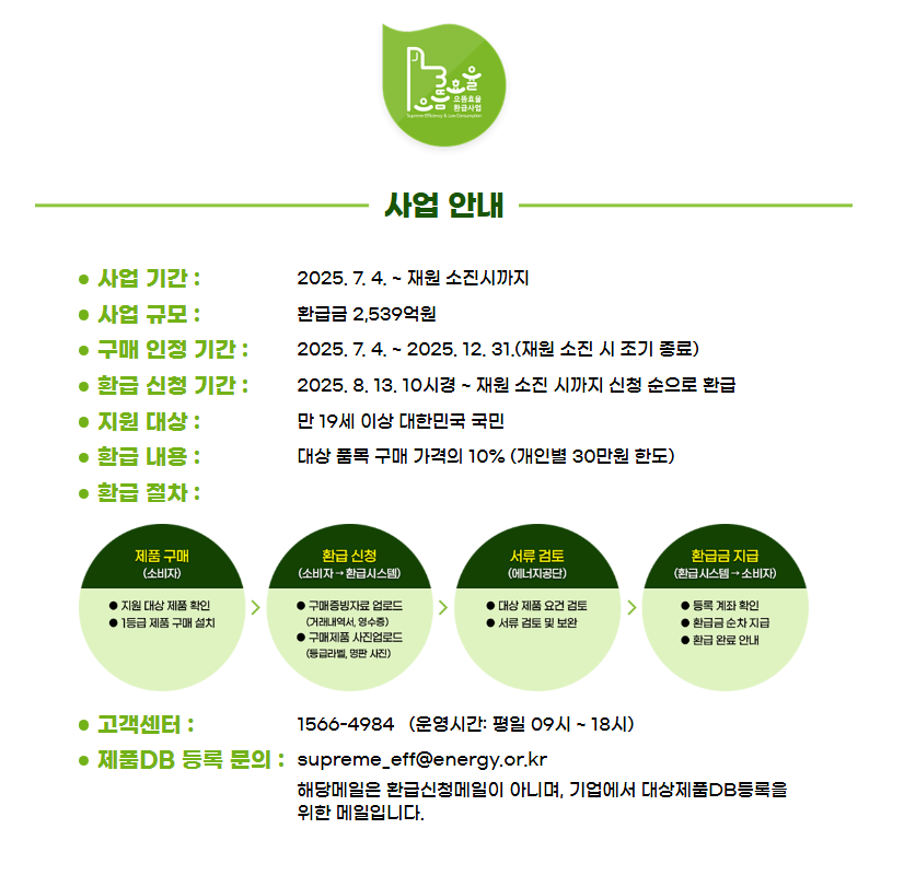 단순한 할인 혜택이 아니라, 친환경 소비를 장려하고 전력 사용량을 줄이는 정책적 의미가 크죠. 이번 글에서는 환급 조건, 지원 품목, 신청 방법을 한 번에 정리해 드립니다.