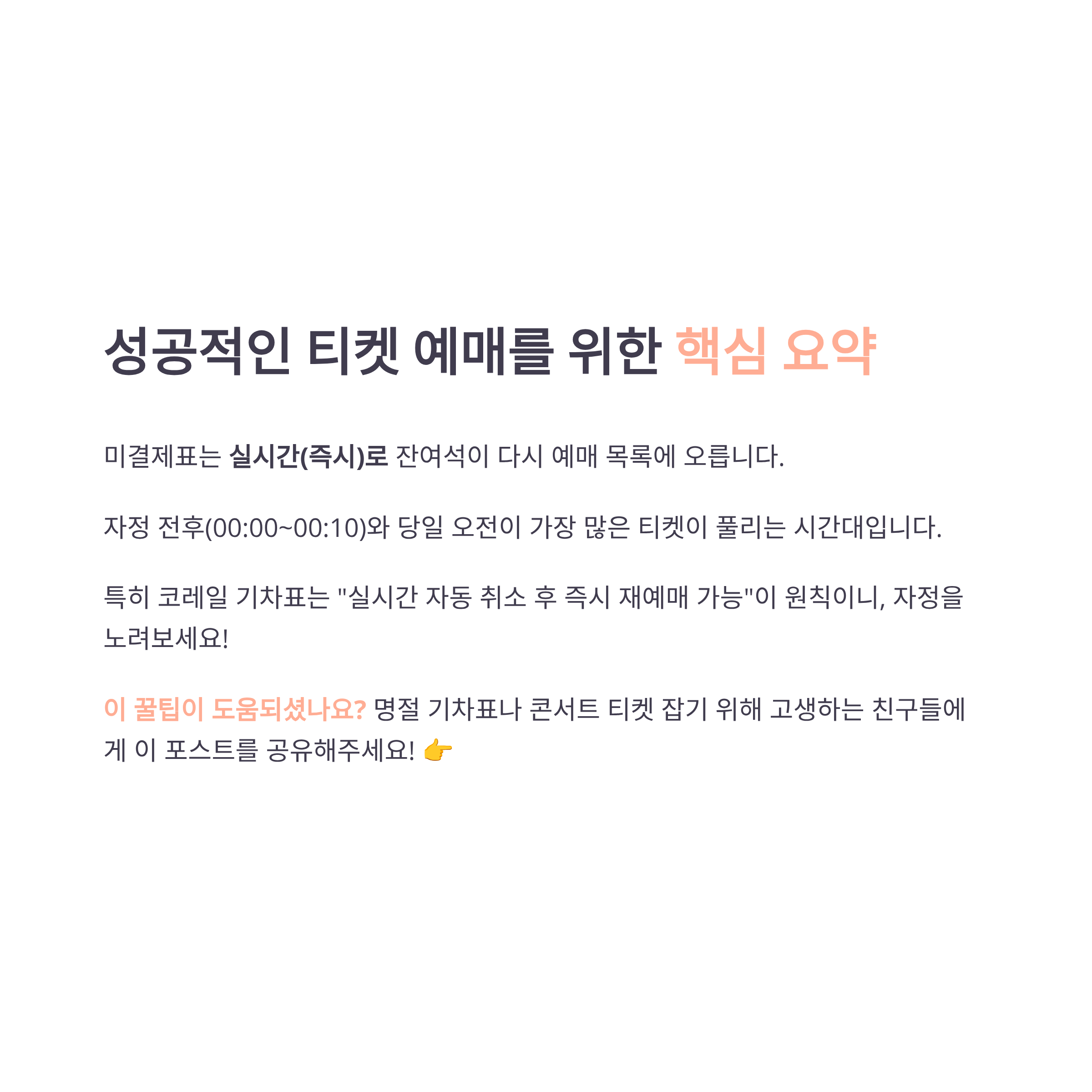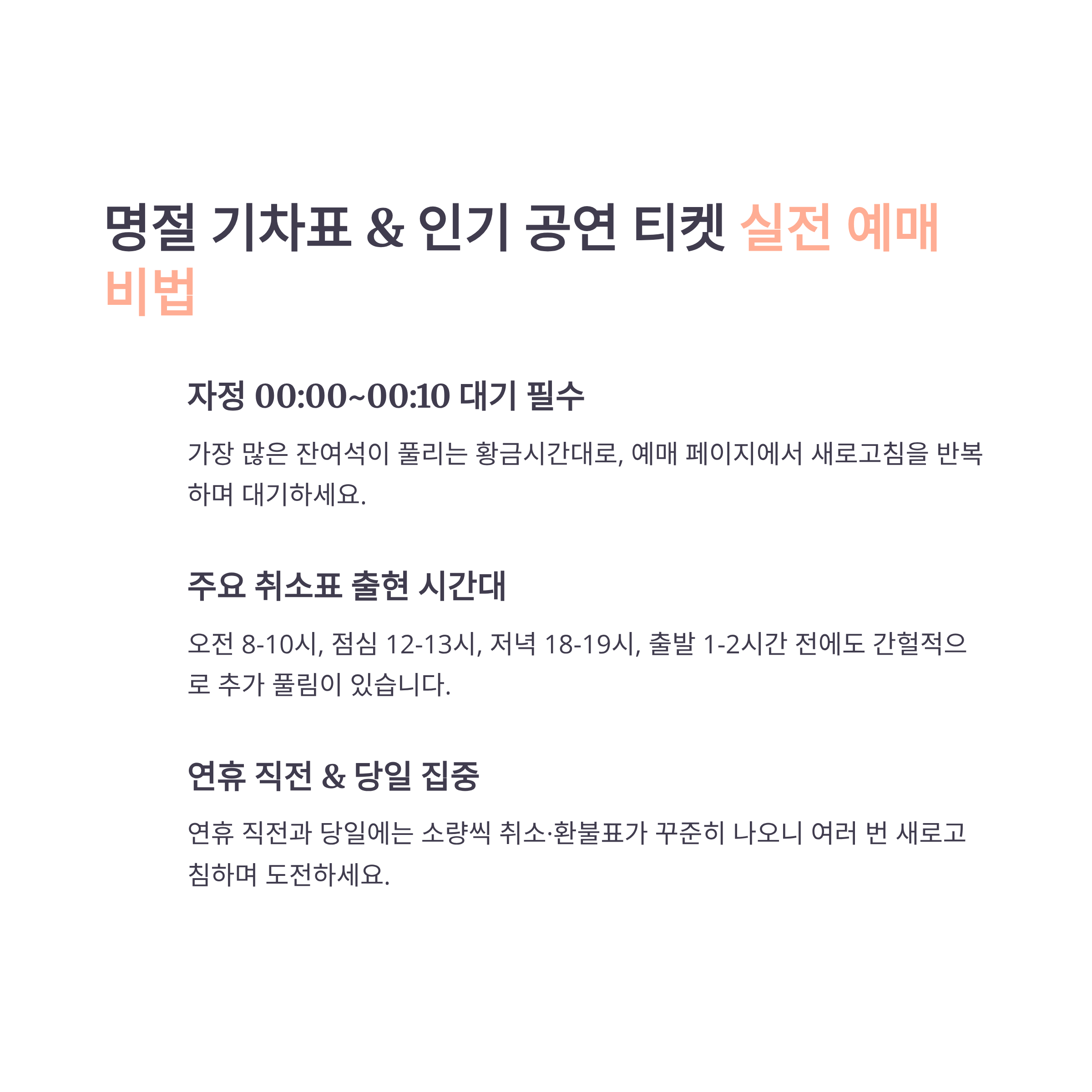 - ✅ 자정 00:00 대기 – 자동 취소 좌석이 몰리는 핵심 시간