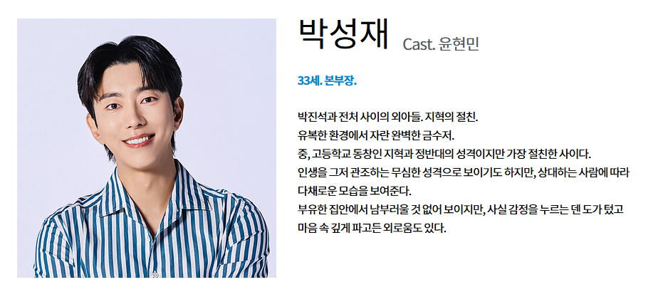 - 박성재: 지혁의 절친, 은오를 향한 묘한 호감을 드러냄.