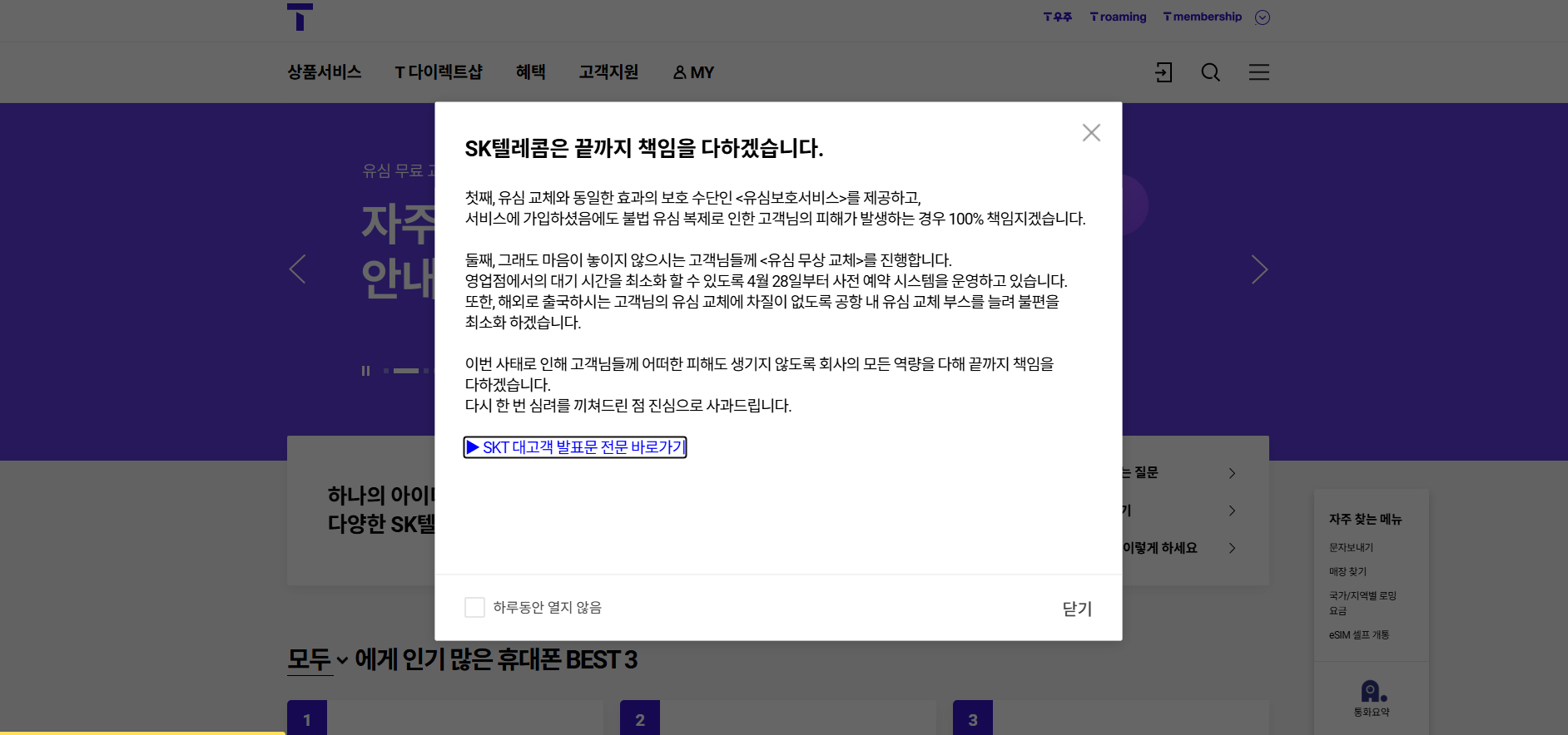 SK텔레콤은 고객 보호를 위해 모든 가입자 대상 유심 무료 교체를 발표했습니다. 다음은 주요 내용입니다.